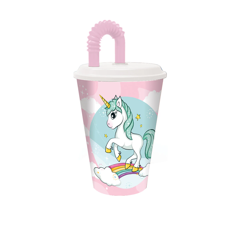 Пластмасова чаша с капак и сламка Unicorn Range – вълшебство с всяка глътка!