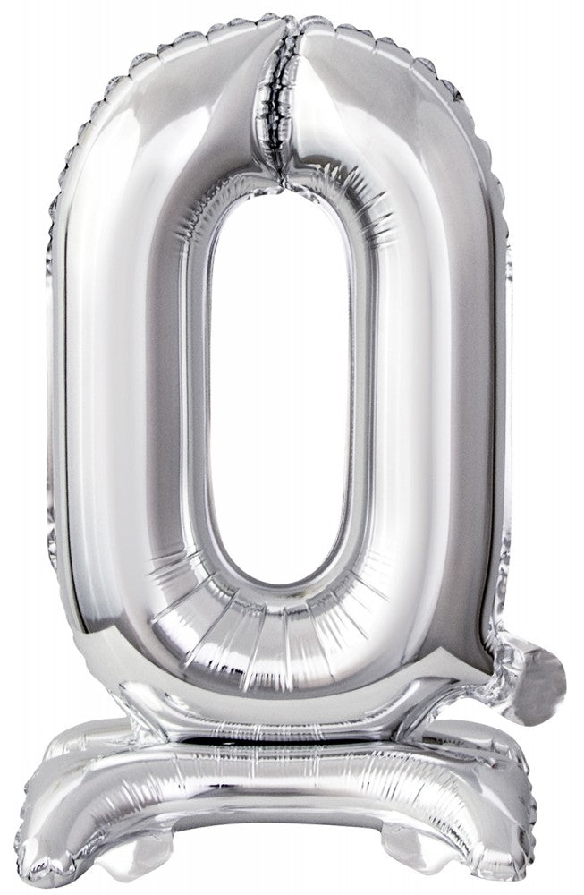 - Номер Сребро, Сребро Мини фолио балон with base of число 0, 38 см