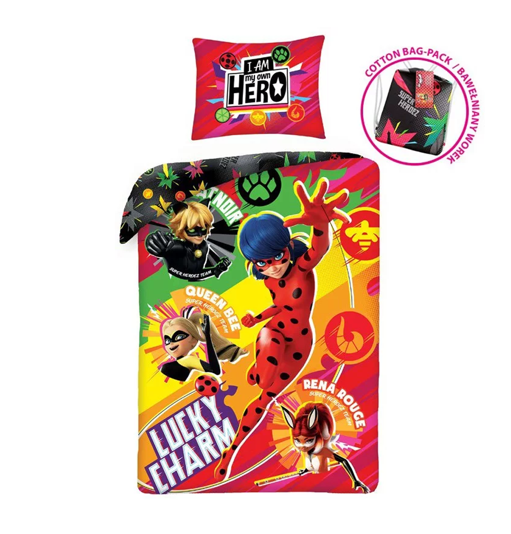Нека детето ви се потопи в вълнуващия свят на Мега чудесата с този зашеметяващ комплект от памучно спално бельо, посветен на Калинката и Черния котарак! Създаден за истински фенове на популярния анимационен сериал, този комплект носи енергия, стил и героизъм в детската стая.