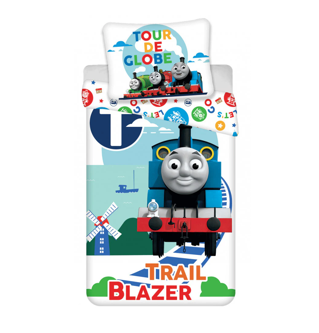 Насладете се на комфортен сън с любимите си герои от "Влакчето Томас"! Този комплект е идеален за всички фенове на Томас, които обичат стил и удобство.