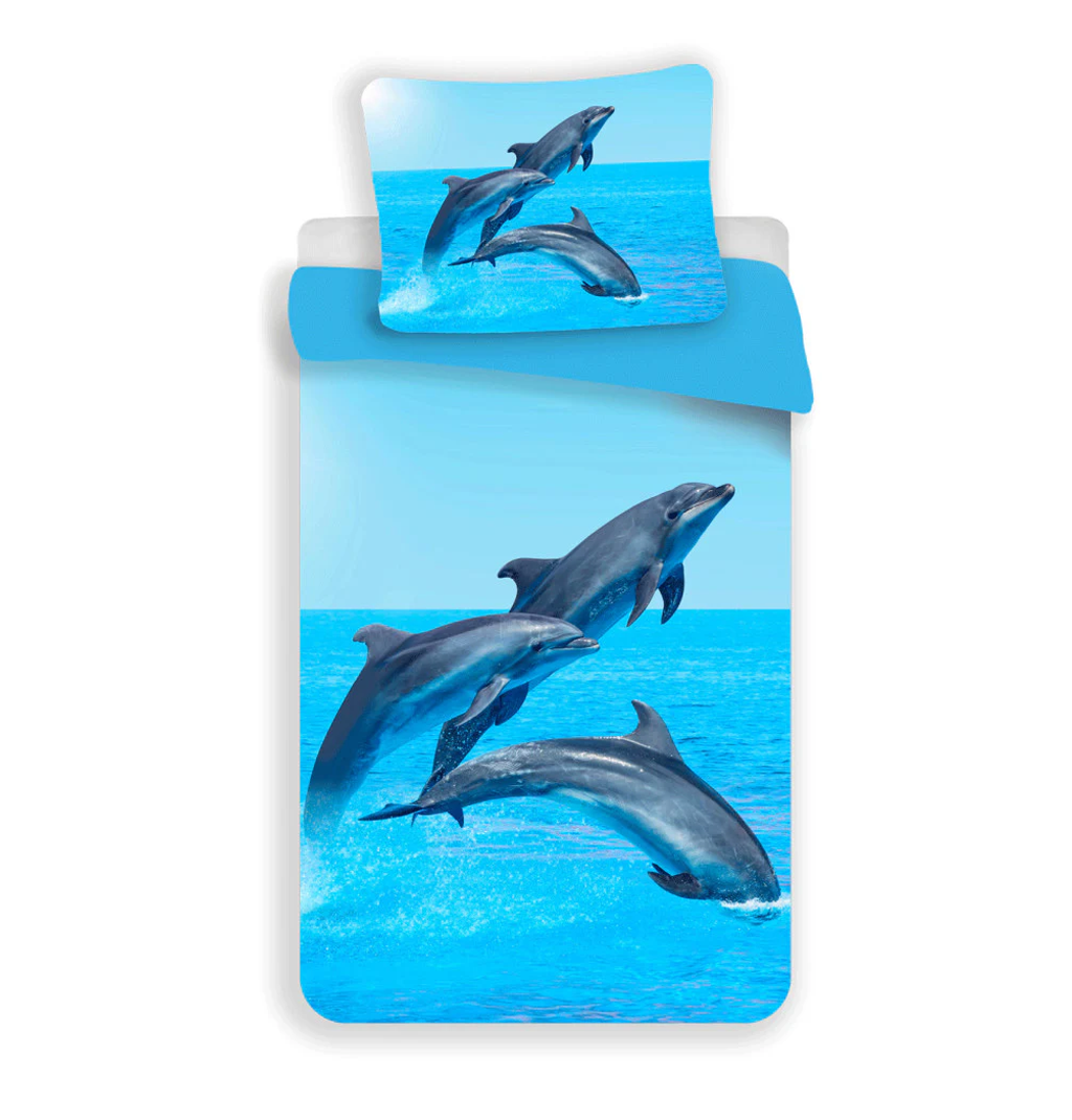 Потопете се в мечтания свят на океана с този красив спален комплект от микрофибър с делфини. Комфортен, лесен за поддръжка и идеален за любителите на морето!
