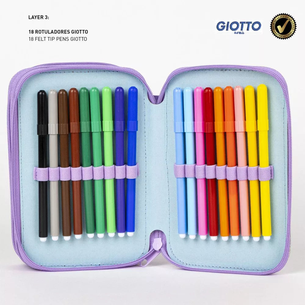 Съчетание от стил, качество и практичност – този Несесер с 3 отделения Disney Frozen е напълно оборудван с висококачествени италиански моливи и маркери GIOTTO. Перфектен избор за училище, домашни занимания или като подарък за феновете на Frozen.