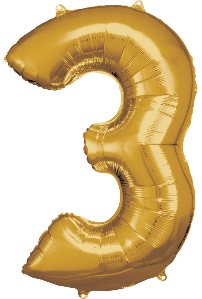 Число Гигант 3 Foil Балон, Gold 83*53 cm
