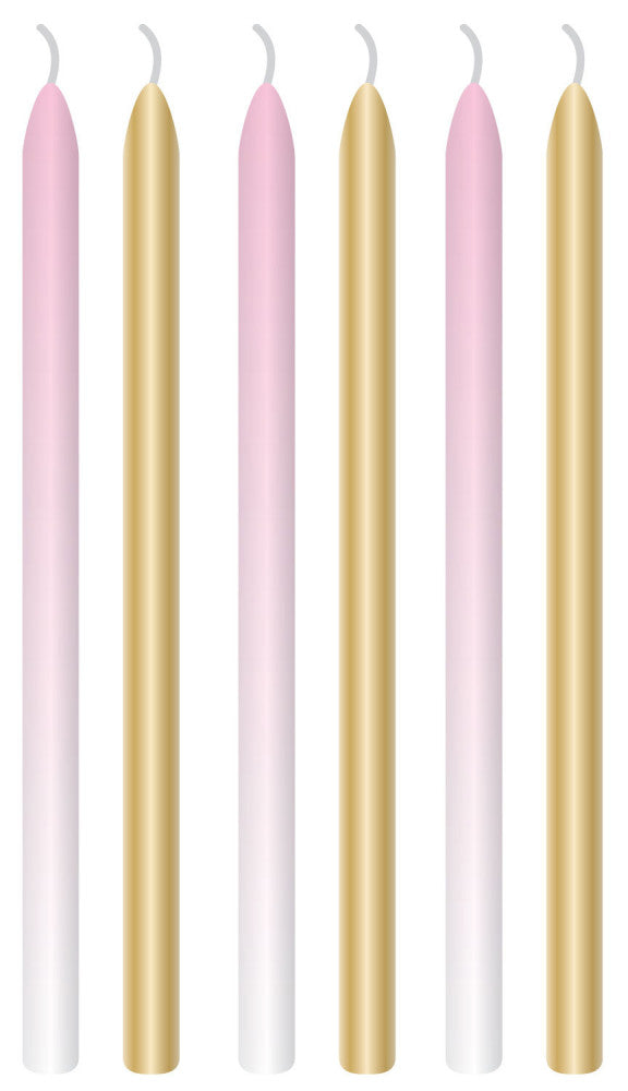 - Цвят Розов омбре Честит Рожден ден cake Свещи, candle комплект 6 части
