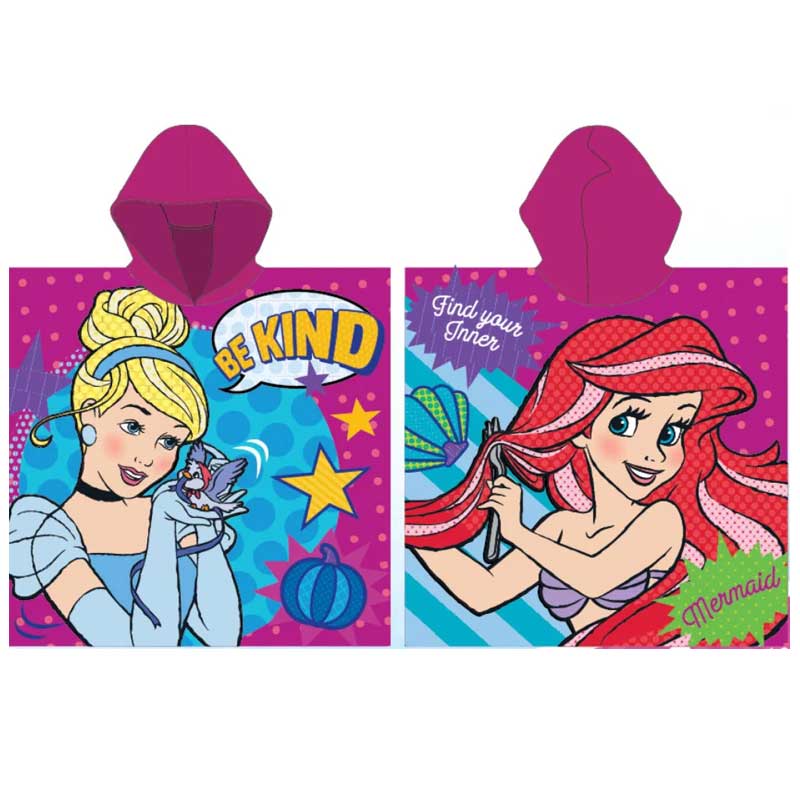 Със своя пъстър принцески принт, това пончо ще зарадва всяка малка почитателка на любимите героини на Disney – като Бел, Ариел, Рапунцел и други.