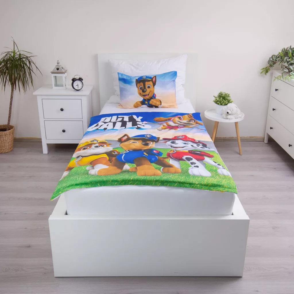 Създай уютна атмосфера в детската стая с този чаровен детски спален комплект Paw Patrol. Изработен от 100% памук, той осигурява мекота и комфорт, а веселият дизайн с любимите кученца от Paw Patrol ще направи съня на всяко дете още по-приятен.