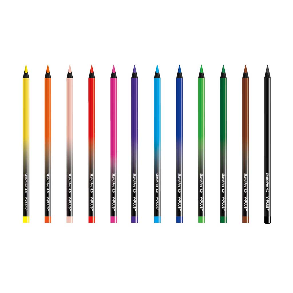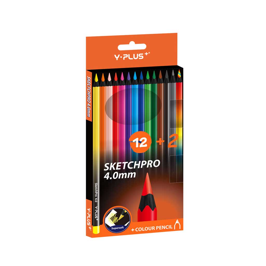 YPLUS SketchPro – Цветни моливи, 12 цвята + многоцветен + графитен