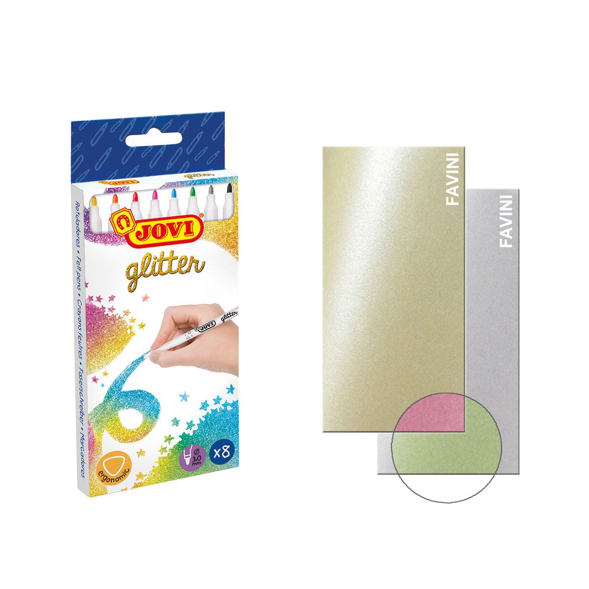 JOVI – Глитерни флумастери, 8 цвята + подарък перлен картон