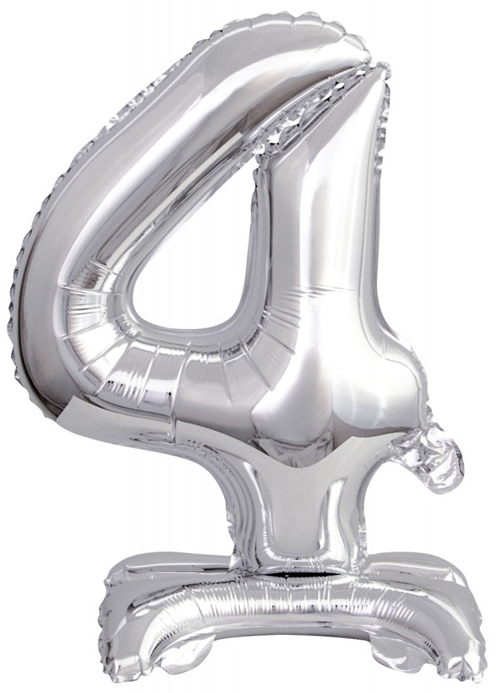 - Фолиев балон цифра "4" сребро със стойка - 38 см