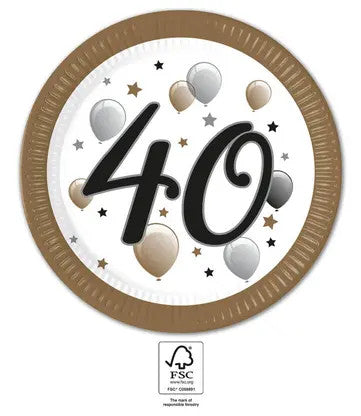 Честит Рожден ден 40 пластамасова чиния 8 части 23 cm FSC