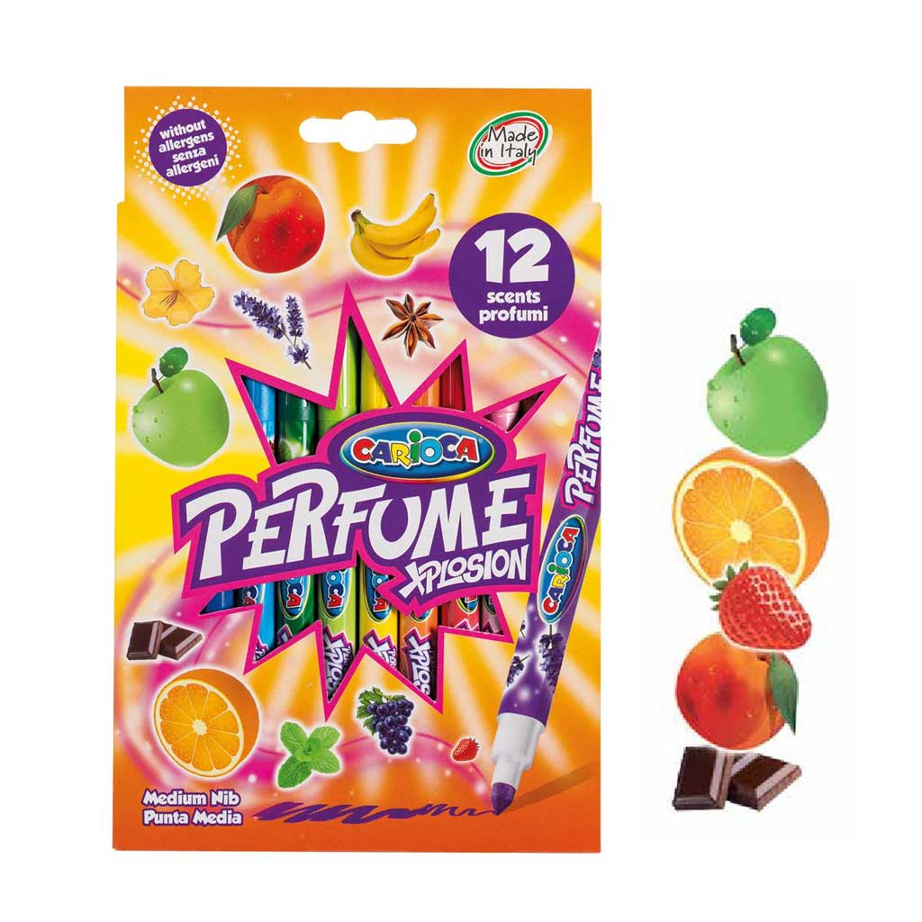 Направи рисуването още по-приятно с ароматните флумастери Carioca! Със свежи и естествени аромати, ярки цветове и удобен конусовиден връх, те са идеални за малки и големи творци.