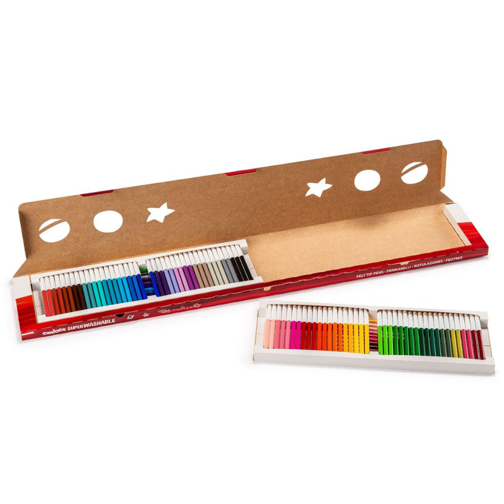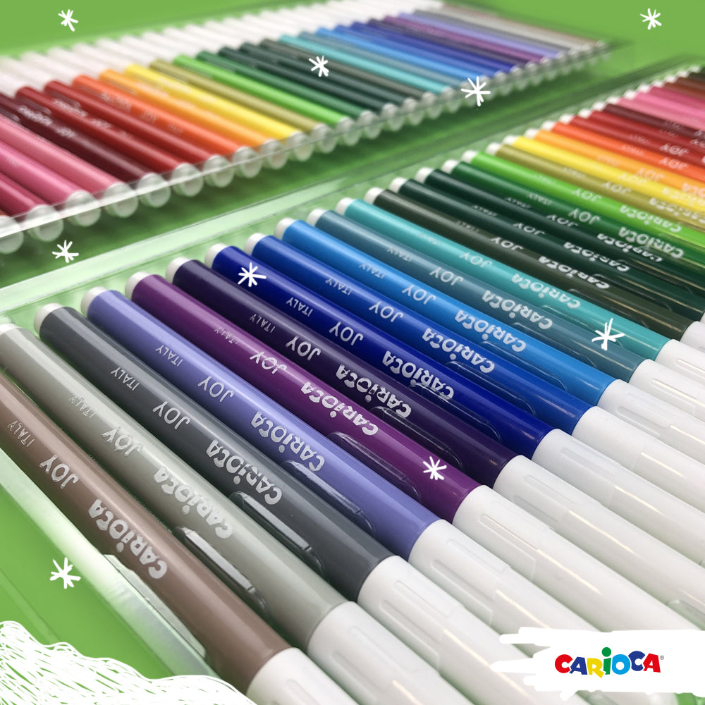 Повече цветове, повече забавление! С комплекта Carioca JOY получаваш цели 100 флумастера с ярки и наситени цветове, подходящи за големи групи, училища, творчески работилници или за малките артисти у дома.