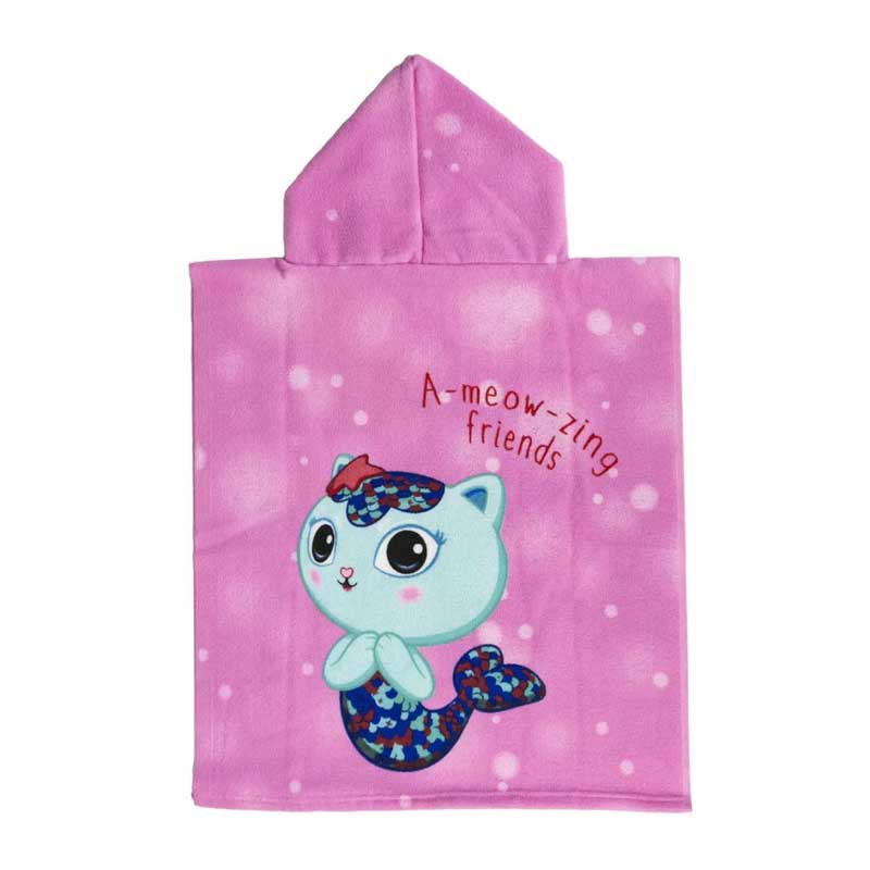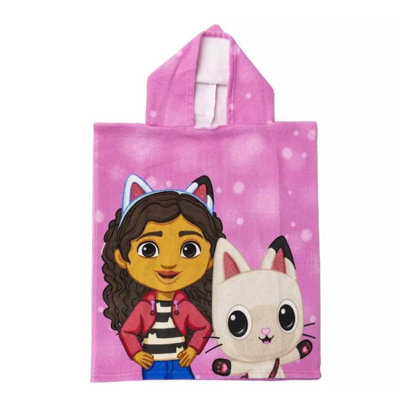 Превърнете къпането на вашето дете в забавно приключение с това пончо-хавлия Gabby's Dollhouse. Вдъхновено от популярния анимационен сериал, това пончо съчетава практичност и забавление, правейки всяко излизане от водата още по-вълнуващо.