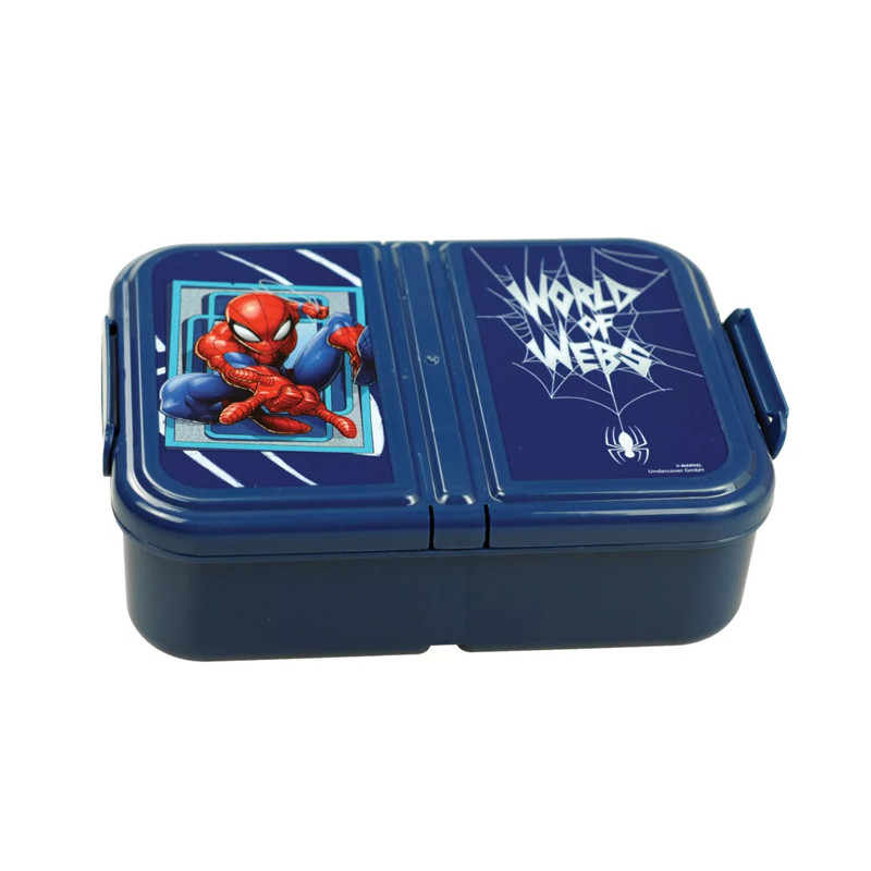 Практичен и стилен училищен комплект Spiderman, който включва кутия за сандвичи с отделения и алуминиева бутилка. Перфектен избор за училище, екскурзии или разходки, този комплект съчетава удобство и дизайн с любимия супергерой.