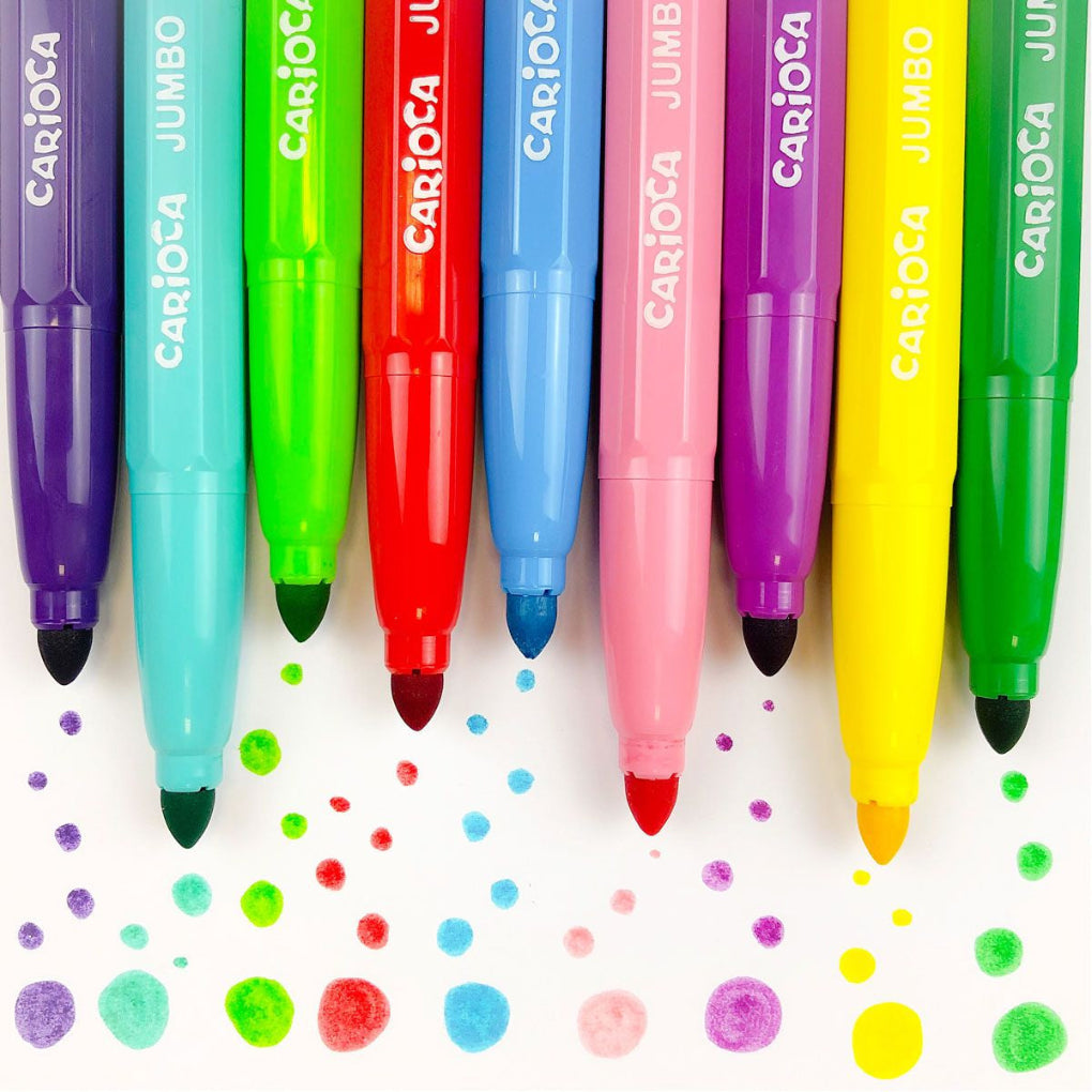 Големи и удобни маркери Carioca Jumbo, създадени за малките детски ръчички. Със здрав и безопасен връх 6 мм, те осигуряват ярки цветове и приятно рисуване. Нетоксичното и изпиращо се мастило ги прави идеален избор за деца и училище.