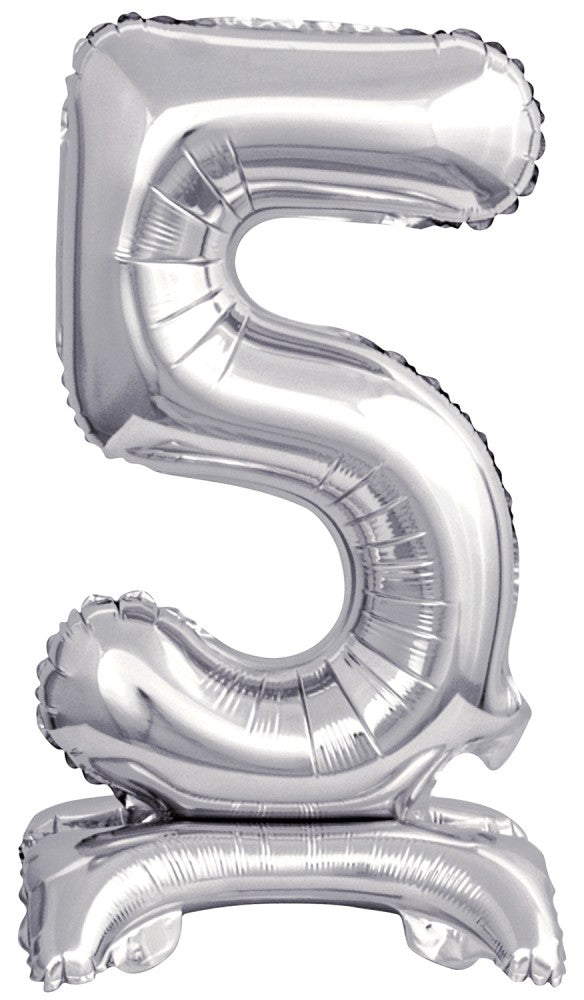 Число Сребро Мини 5 foil Балон with base 38 cm