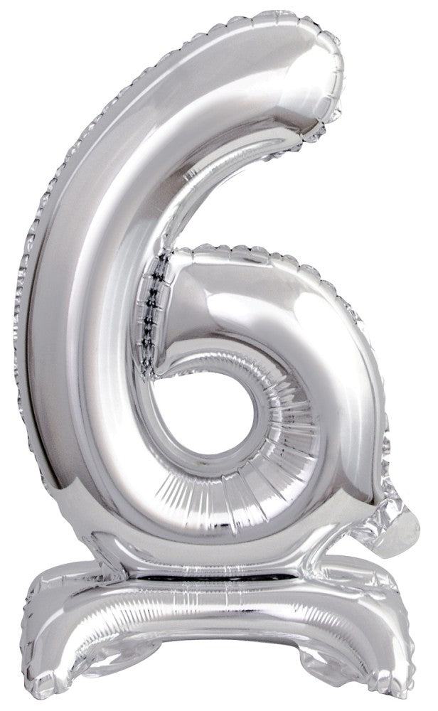 Число Сребро Мини 6 foil Балон with base 38 cm