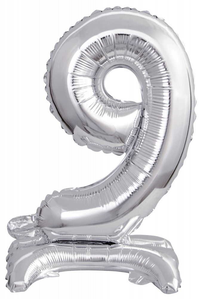 Номер Сребро, Сребро Мини число 9 фолио балон with base 38 см