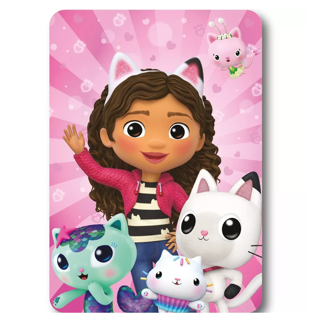Пренеси се в света на въображението с това сладко и цветно одеяло от Gabby's Dollhouse – перфектният избор за малките почитатели на анимационното приключение!