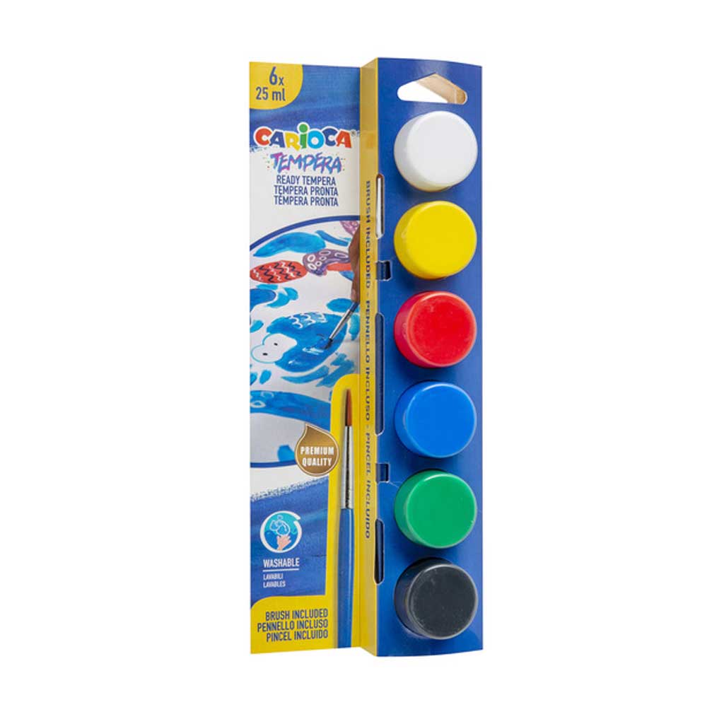 Carioca – Темперни бои в бурканчета, 6 цвята х 25 мл с четка