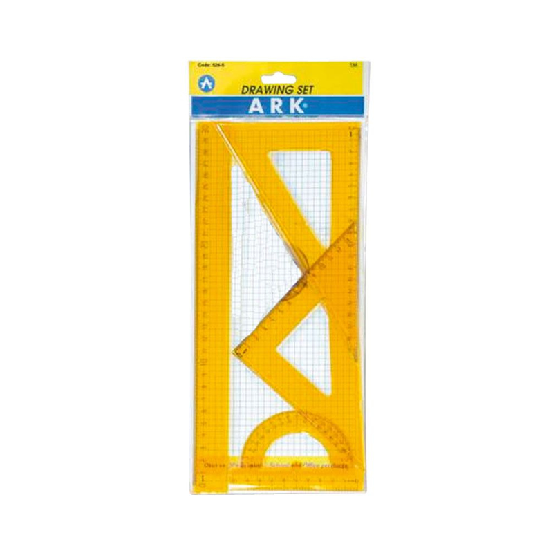 Практичен комплект за училище и техническо чертане, съчетаващ всичко необходимо за точност и удобство. Изработен от висококачествена прозрачна пластмаса, подходящ за ежедневна употреба от ученици и студенти.