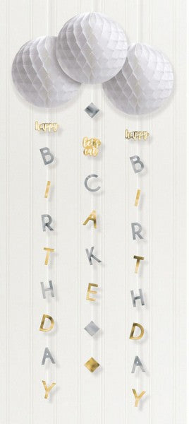 Честит Рожден ден Сребро, G  Честит Рожден ден hanging декорация комплект от 3