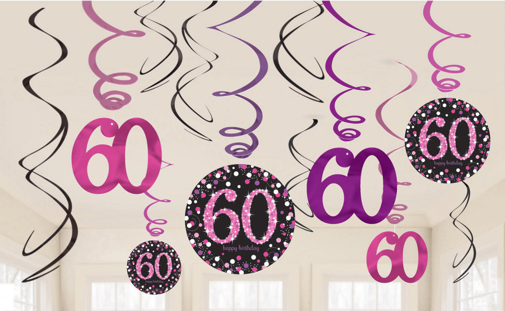 Честит Рожден ден Розов 60 ribbon декорация 12-части Комплект .