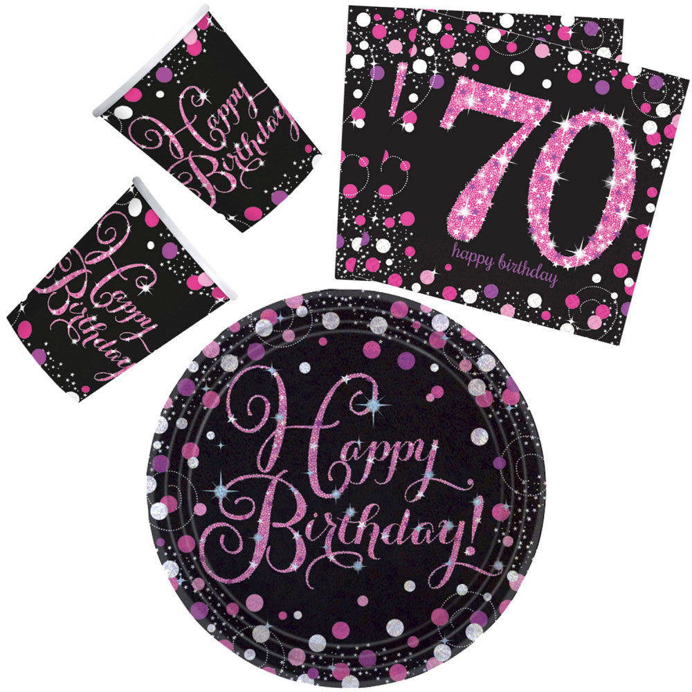 Честит Рожден ден Честит Рожден ден Розов 70 Парти комплект with 32 pieces and 23 см plate
