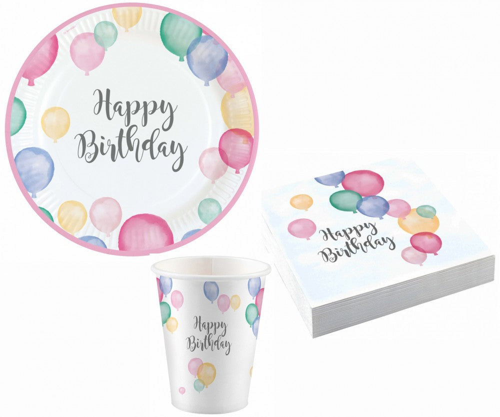 Честит Рожден ден Честит Рожден ден Pastel Парти комплект 36 части with 23 см plate